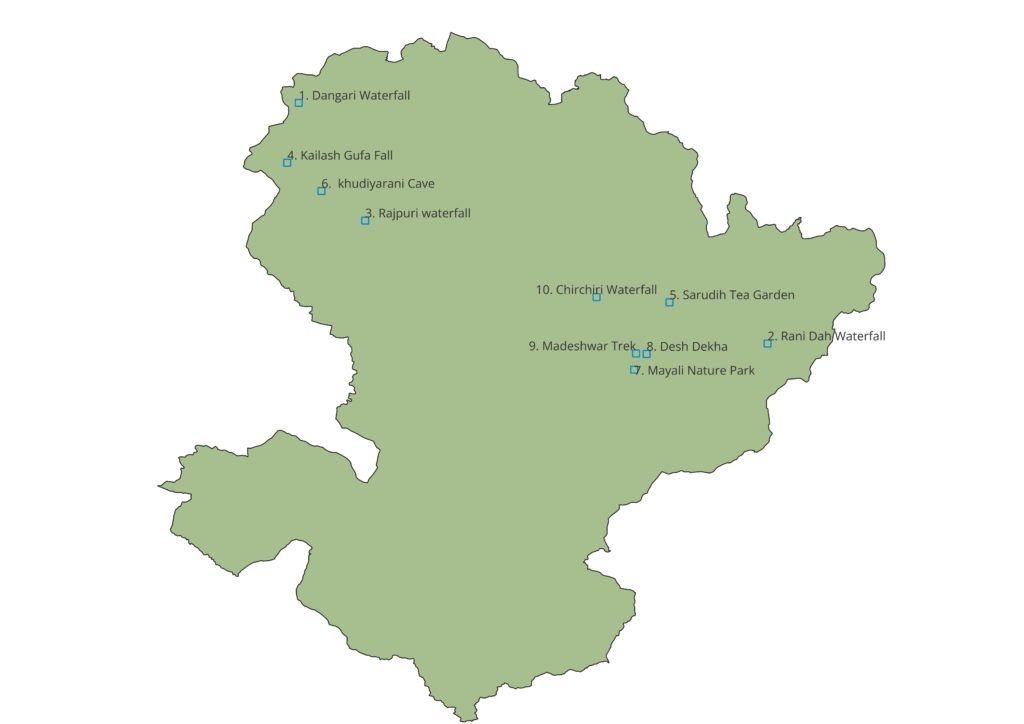 1. Hey , Kaushal bro i visited Dangari waterfall, Rani dah waterfall, Rajpuri waterfall, Kailash gufa ,mayali nature park etc. This place are very good and beautiful especially in rainy season.